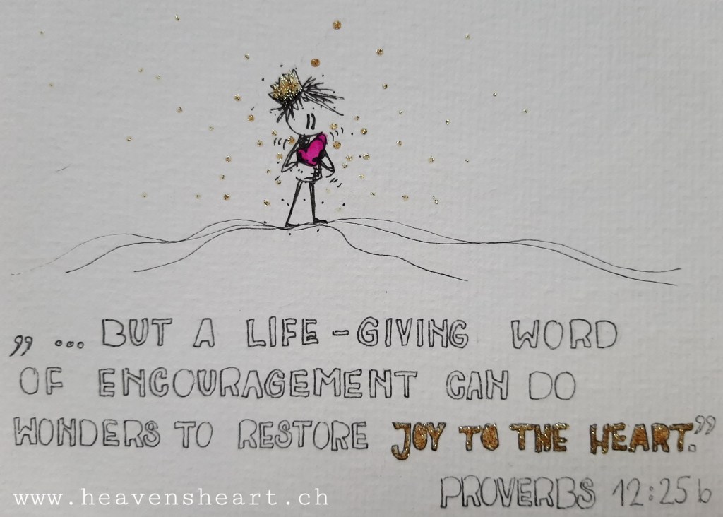…aber ein lebensspendendes Wort der Ermutigung kann Wunder bewirken, um dem Herzen wieder Freude zu bereiten.” ~proverbs 12:25b (the passion translation)