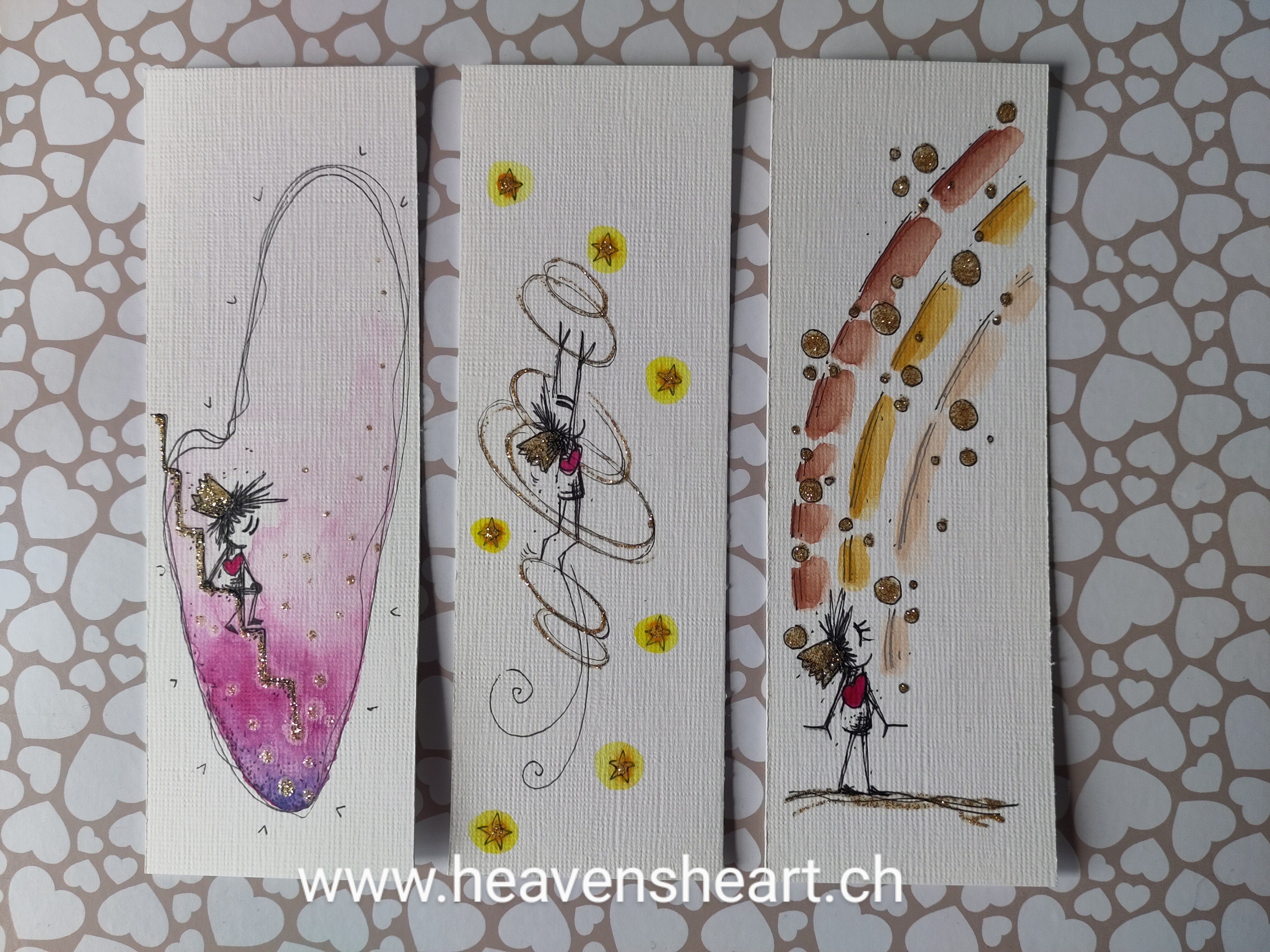 Buchzeichen, Original Handgemalt (natürlich mit Glitzer…): 2.-/ Stück