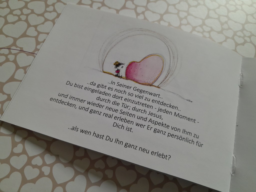 Ein kleines Booklet (A6) zum Thema “In seiner Gegenwart”.. mit über 10 verschiedenen Motiven um ganz neu in seine Gegenwart einzutauchen und Ihn auf eine neue Art und Weise kennenzulernen und darüber zu meditieren. Entweder für Dich ganz persönlich oder auch zum weiterschenken.