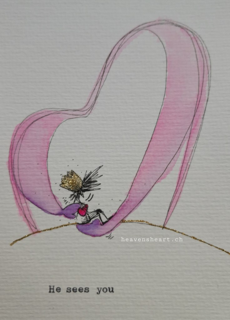 Ich weiss nicht wie es Dir geht – aber diese Wahrheit berührt mich immer wieder zutiefst in meinem Herz – Er sieht mich – so wie ich bin, dort wo ich bin – mit all meinem Sein – auch wenn ich manchmal selber die Worte nicht finde – Er sieht mich mit seinem Blick voller ewiger, wilder und endloser Liebe an – und das lässt mich Ihn umso mehr zurücklieben.